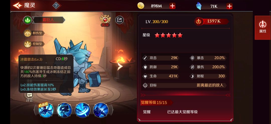 这个魔灵很有意思,乙方队友死亡就召唤小弟,对方死亡也召唤小弟,反正只要它活着,基本上我方单位都能越打越多。4技能普攻直接变群伤。所有技能都非常使用,唯一不好的是个近战输出,不够肉的话死太快了。要是个远程,又是一个神。
