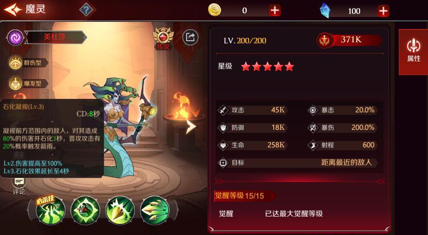 建议:符文以生命为主,攻击为辅。主要是放置时会把美杜莎放在靠前点的位置,让她能控住更多的敌方,所以生存能力很重要,而且她输出不高,攻击的效益也就没那么大。