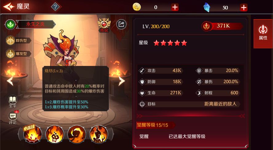 三技能烧尽,相当于将普攻变群攻。用来磨前排血相当不错,看起来概率不高,伤害不高,胜在是普攻触发,积少成多,不可小视。对比无头的直接变群攻可能看起来不如,但要知道这是后排输出,相比无头输出环境好太多了。