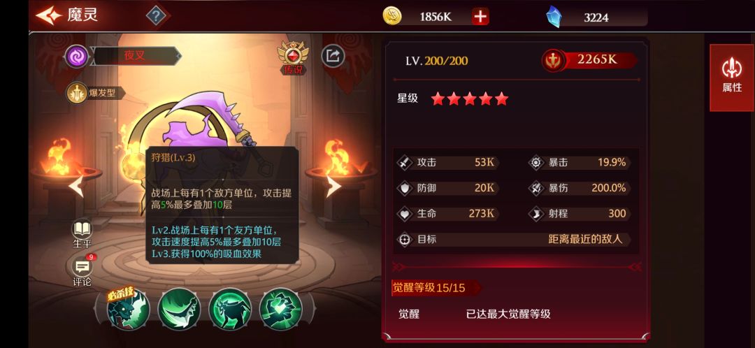 建议:符文以攻击为主,暴击、爆伤为辅。觉醒等级尽量升高。
