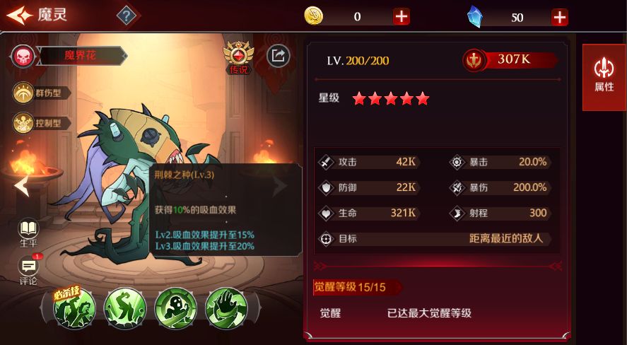定位为控制型输出。实际上是一个集群伤、回血、控制于一体的魔灵,相当于弱化版的魔花。