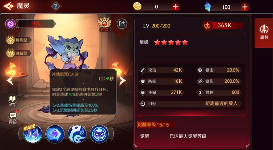 魔灵,根据系别可以分为自然、蛮荒、深渊、地狱四种。(主要用来蹭阵容里的系别加成,系别之间的克制关系不是很明显。)自然系加成生命(3个加10%,5个加20%),蛮荒加成防御(同上),深渊加成攻击(同上),地狱减冷却时间(3个减5%,5个减10%)。