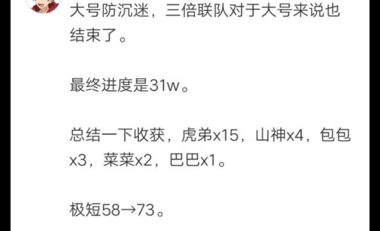 🍞这个时候你应该做的更应该是去推合战场,得到所有极化道具。64极化1振,7图极化1振,目前8图2振。先别急着打联队了,打得心累是一回事,更重要是,亏。10w不一定能到,溢出的经验让你怀疑人生。小判也是钱,不是风刮来的。