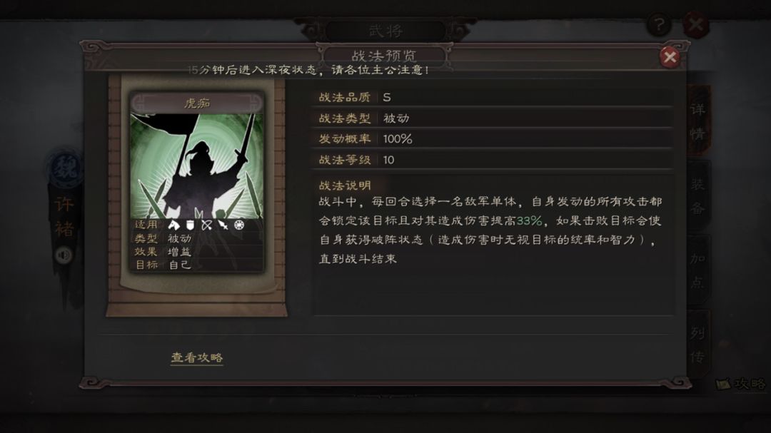 许褚兵书点的胜战,第二回合获得破阵效果,然后