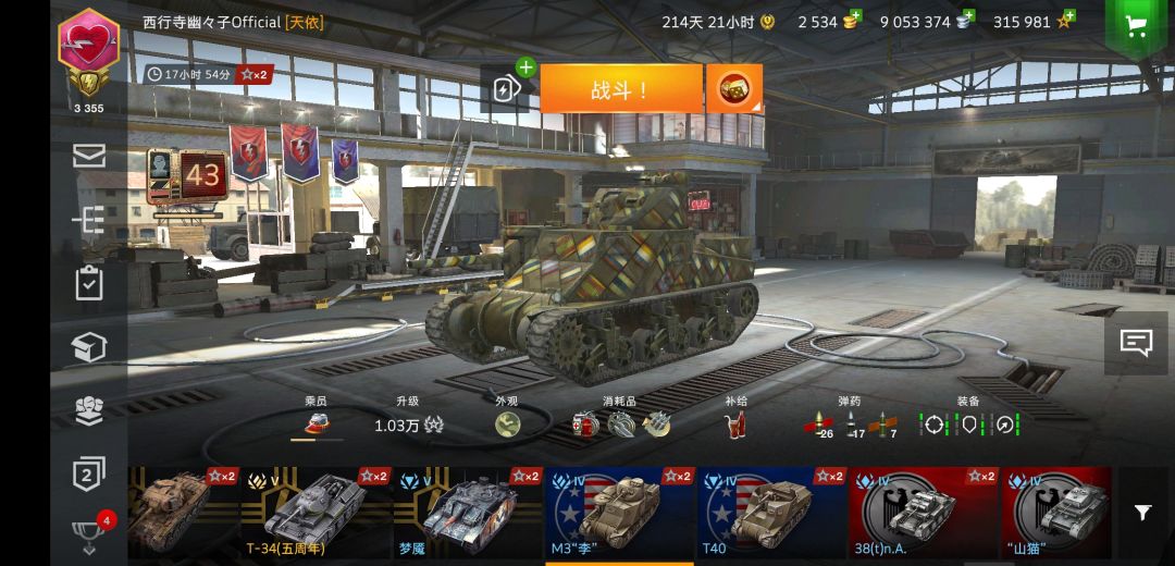 M3由于没有炮塔,一门好炮是它生存的唯一要素,106/127足以保证击穿同级车,在对付五级车的时候虽然有些吃力,但是7.7的装填时间和高伤75炮可以让对手不死也得掉层皮。