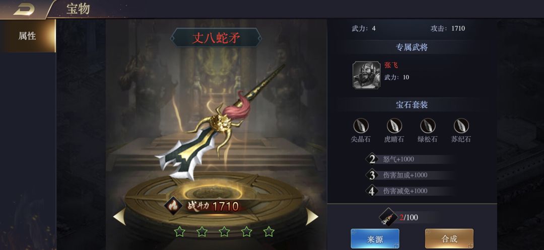 ❀ 攻击:1710 ❀ 武力:4 ❀ 专属武将:张飞 ❀ 专属武力力:10