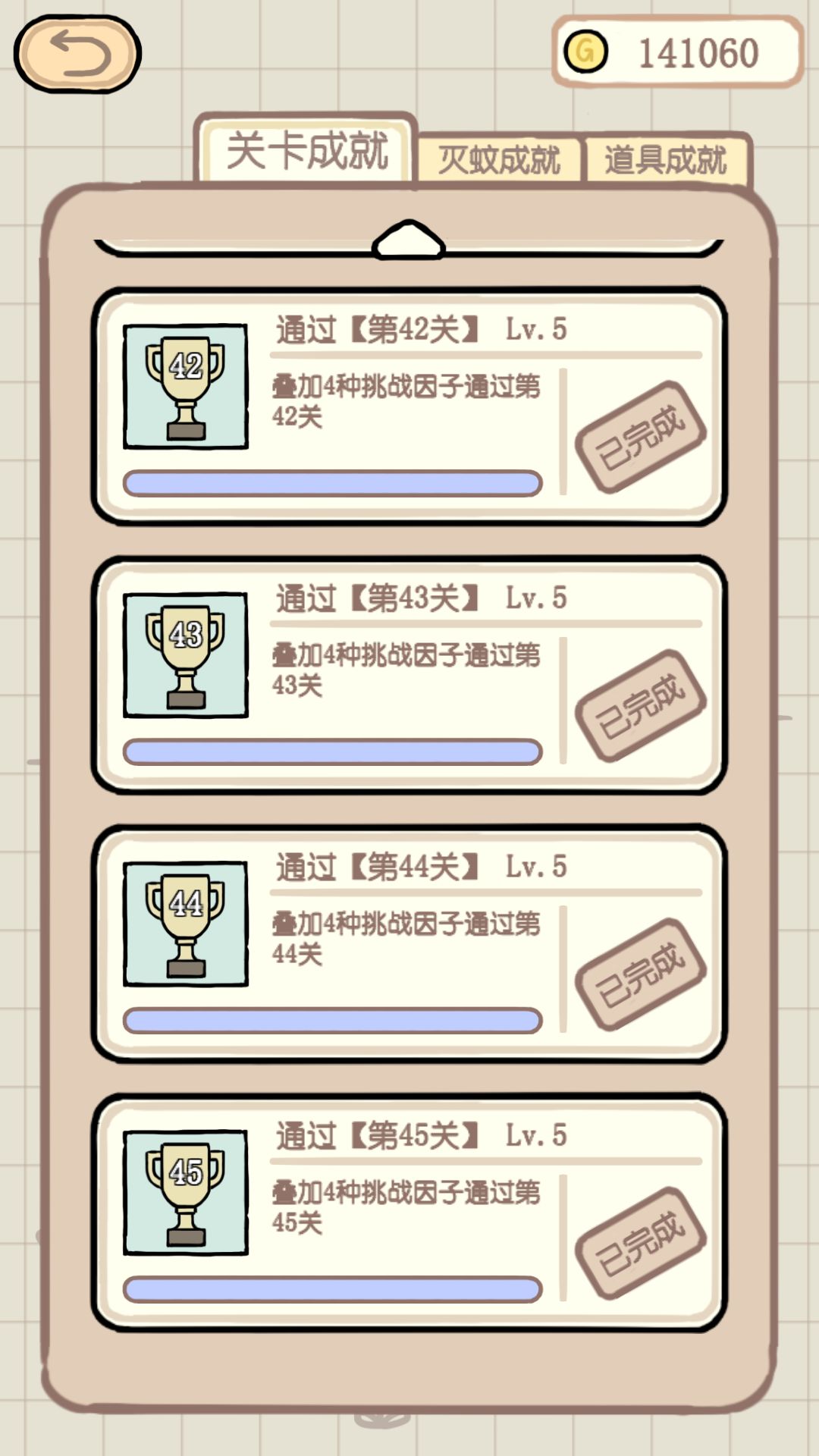 全关卡四难度通关了,唯一可惜的就是不知道怎么样才能不看广告过45关的四难度,其他的都只看了节约道具的光环的广告,整体差不多是150个广告吧(随便凑个整的)