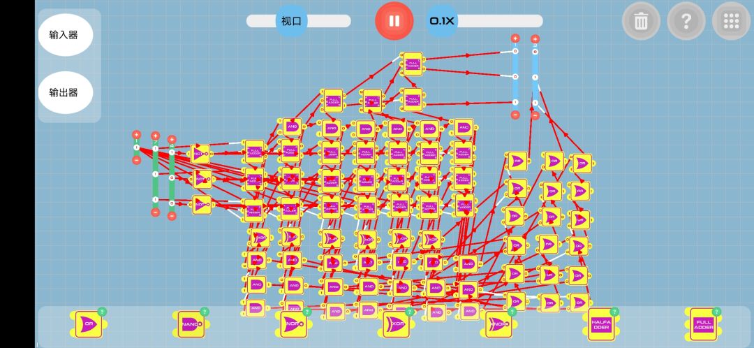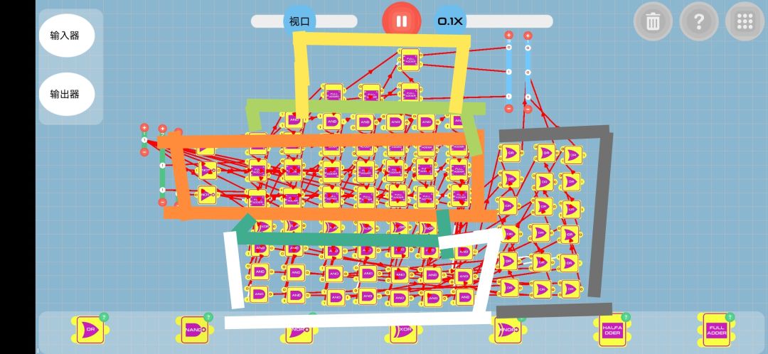 由于游戏设计的问题(不能表示小数,并且没有显示器),所以不能解决n÷0报错以及除到小数的问题。所以只能解决被除数÷除数=商....余的形式。同时,因为这个游戏没有时序电路和锁存,所以不能使用串行除法器和串行乘法器,只能使用并行除法器和并行乘法器。