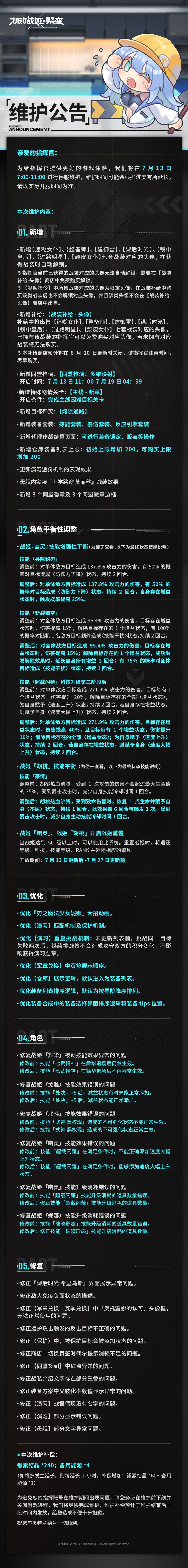 7月13日例行维护公告