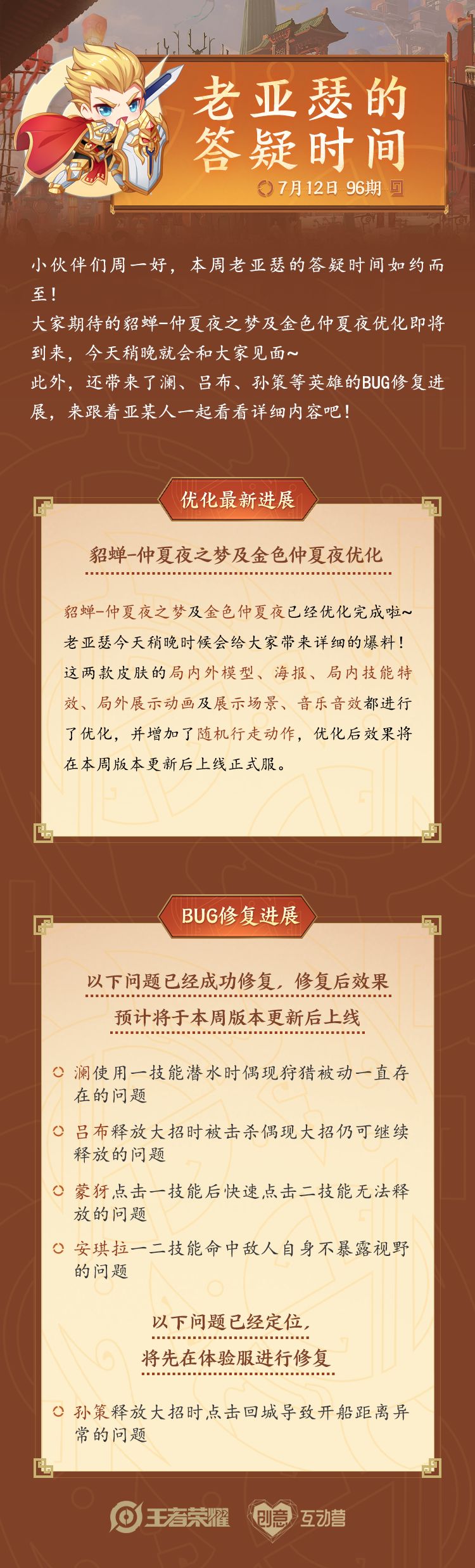 此外,还带来了澜、吕布、孙策等英雄的Bug修复进展,来跟着亚某人一起看看详细内容吧