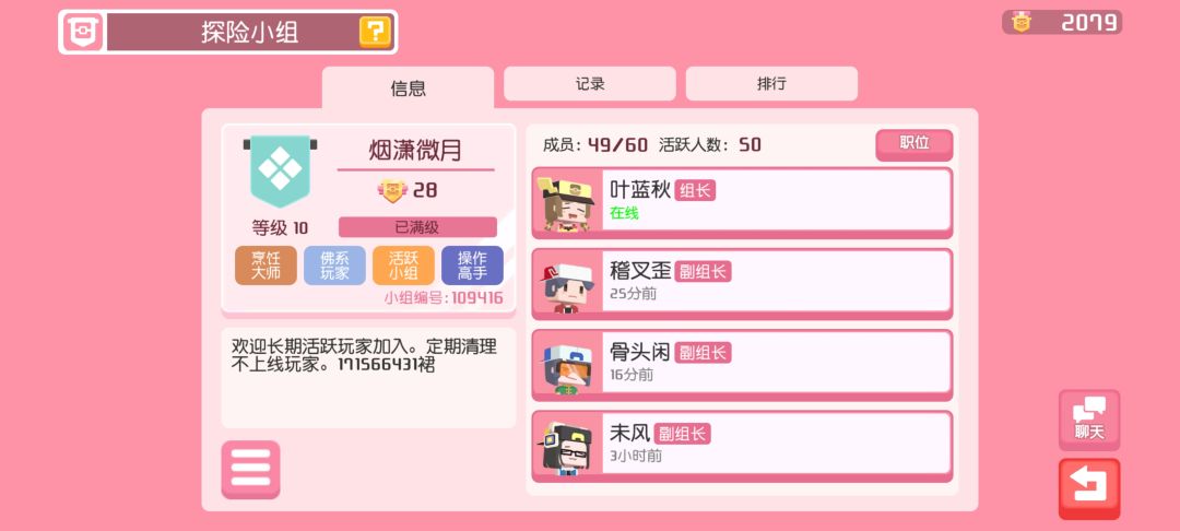 满级小组满级木桩招收长期活跃玩家。q群171566431。小组ID109416欢迎加入。