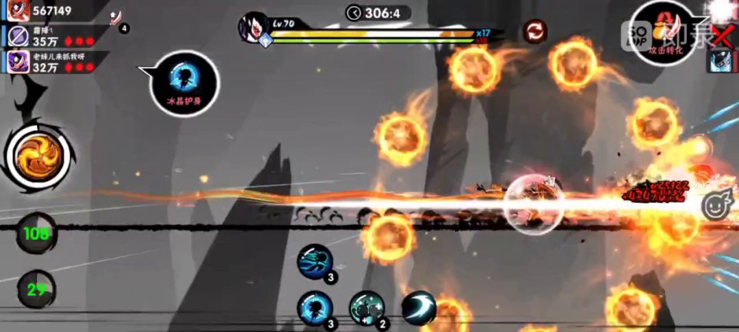 当然,也可以选择使用朱雀、水雀、疾风步主动贴boss脸拉满火球: