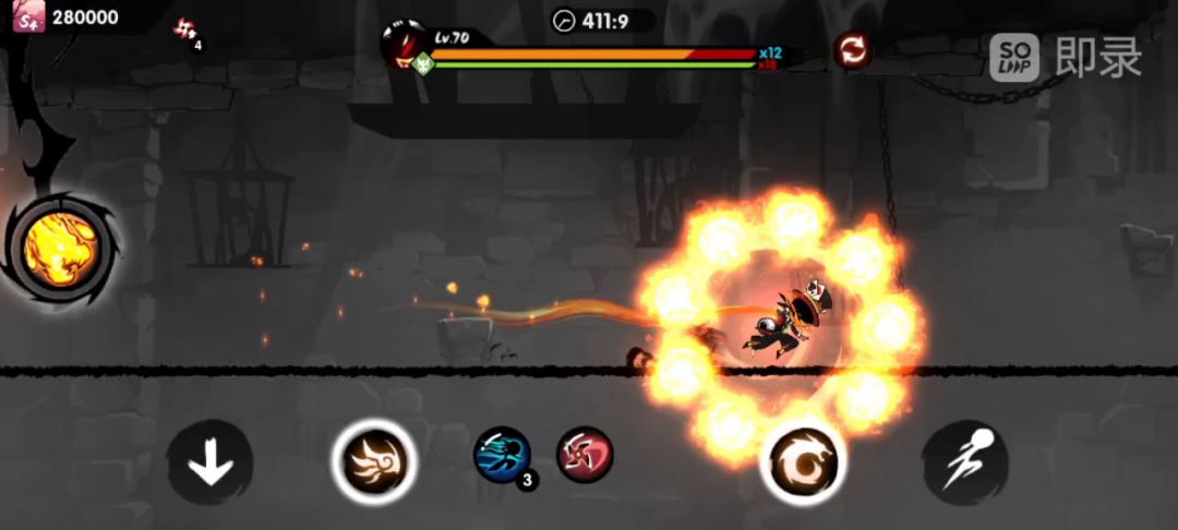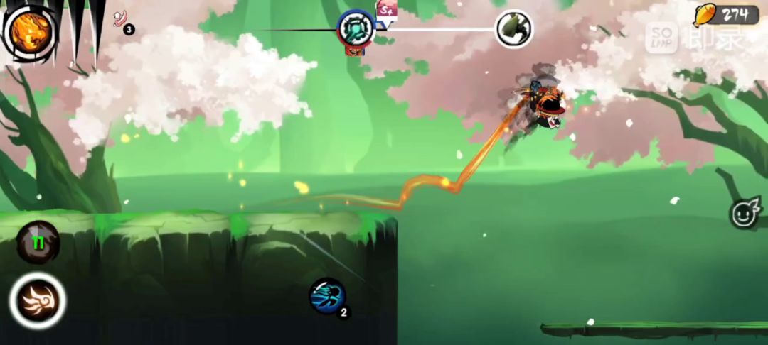 除此之外,在面对式神和剑一类boss时,还可以使用疾风步搭配忍术二阶段使用,可以造成多判增伤: