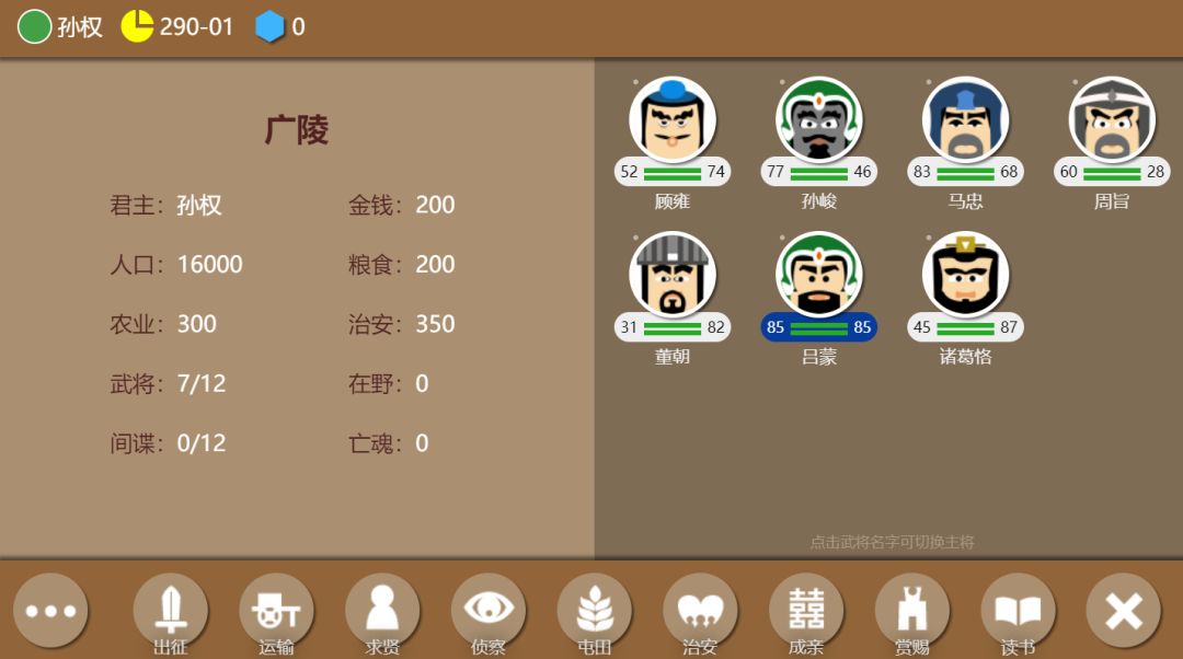 蜀国加入人物廖化,刘巴智力由69上升至83,蒋干,伏寿,各项等数值上升,加入了本不属于三国的武将,孙坚,孙策,曹操等,吴国武将马忠武力数值先前60上升至84_弥补了各位吴国玩家的遗憾,由于吴国人物的文档缺失,所以该剧本吴国人物仅有79个,请大家敬请期待。