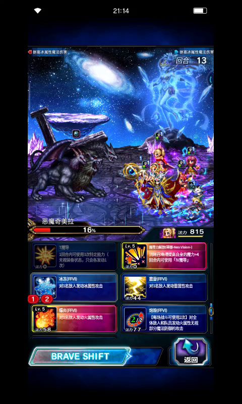 本攻略菲黛14回合左右运气不好2次无属魔攻可能暴毙,输出足够则基本无视(虽然我打了3把都没有挂过),魔坦和物坦操作基本可以照抄,索菲拉缺蓝严重而法伊基本不会缺蓝