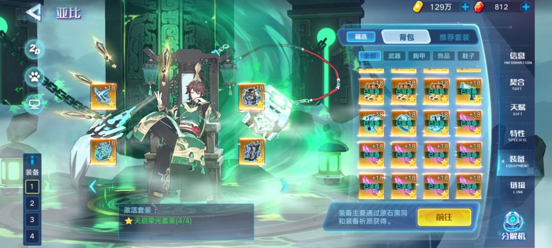 装备属性:全满速(198) 装备推荐:天启