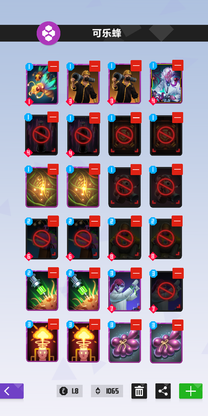 癌蜂,可以站场或与可乐合成,但是要癌蜂+可乐+紧急封锁+拼接实验4张牌去,combo后的癌蜂只能抽+3牌,且手上没有牌,感觉合成的意义不大?