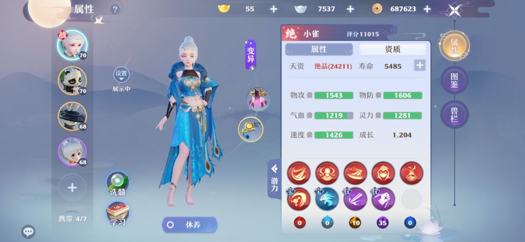 这里我们可以算一下,神兽自带特技肯定不能丢