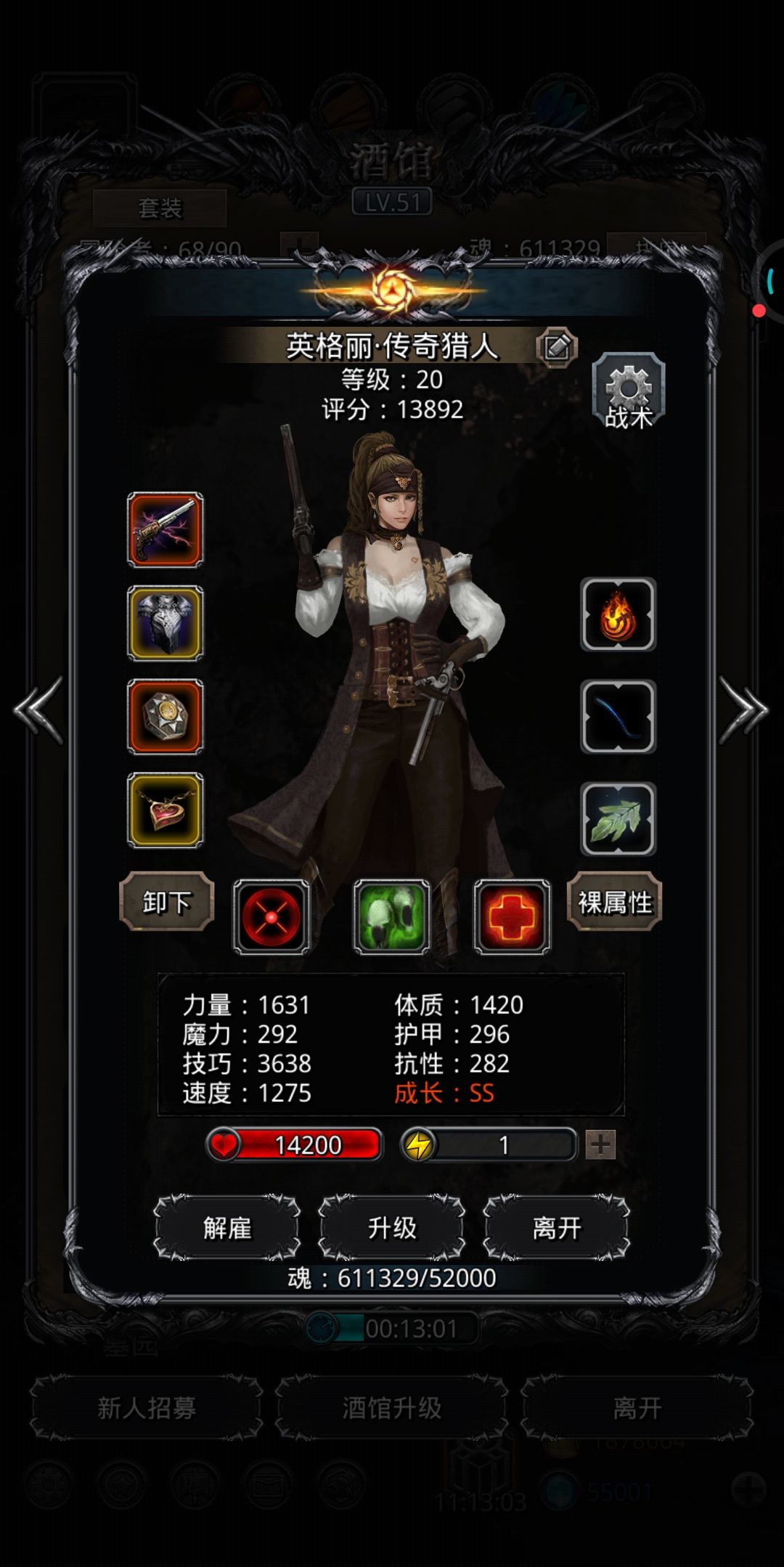 2、剑豪无法自己自足的时候要清楚的计算伤害,上神官额外加护甲保证生存。神官务必上影兽面具,而且务必把所有力量卸负,否则一个回合很难奶到三次。