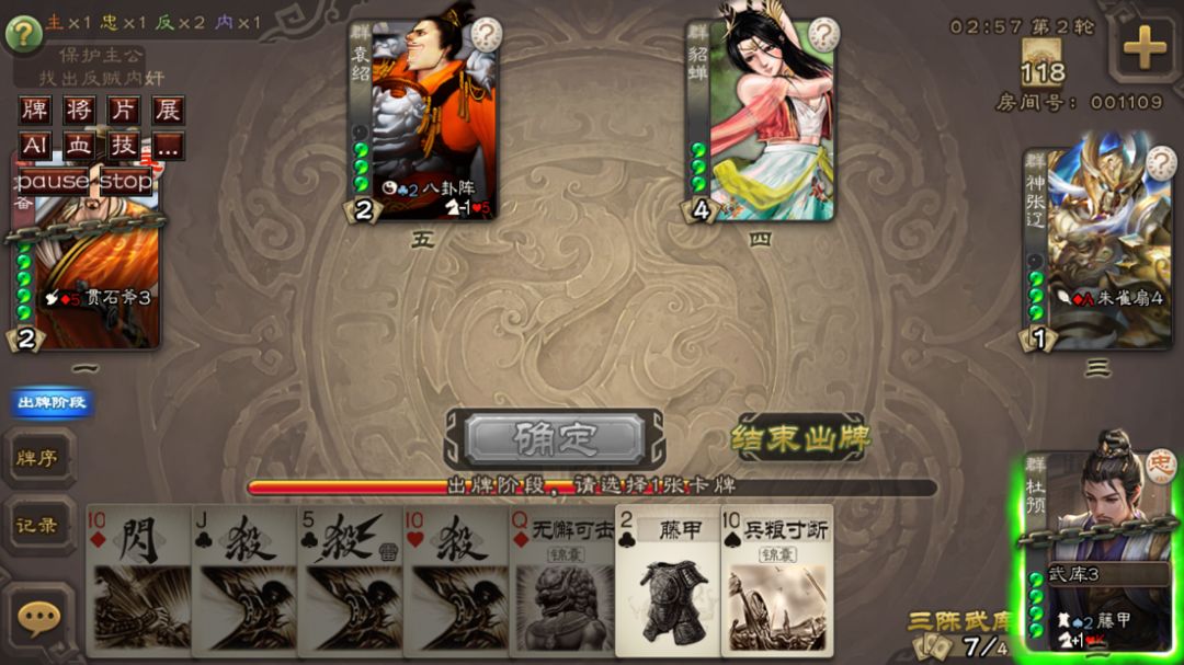 军八的环境比较好的一点就是除了主公外,其余人都是客客气气的,而且杜预武将牌没有特定的指向,开局不会被针对,所以第一【轮】可以稳定觉醒,觉醒后的杜预是个十分合格的忠,能扛能输。