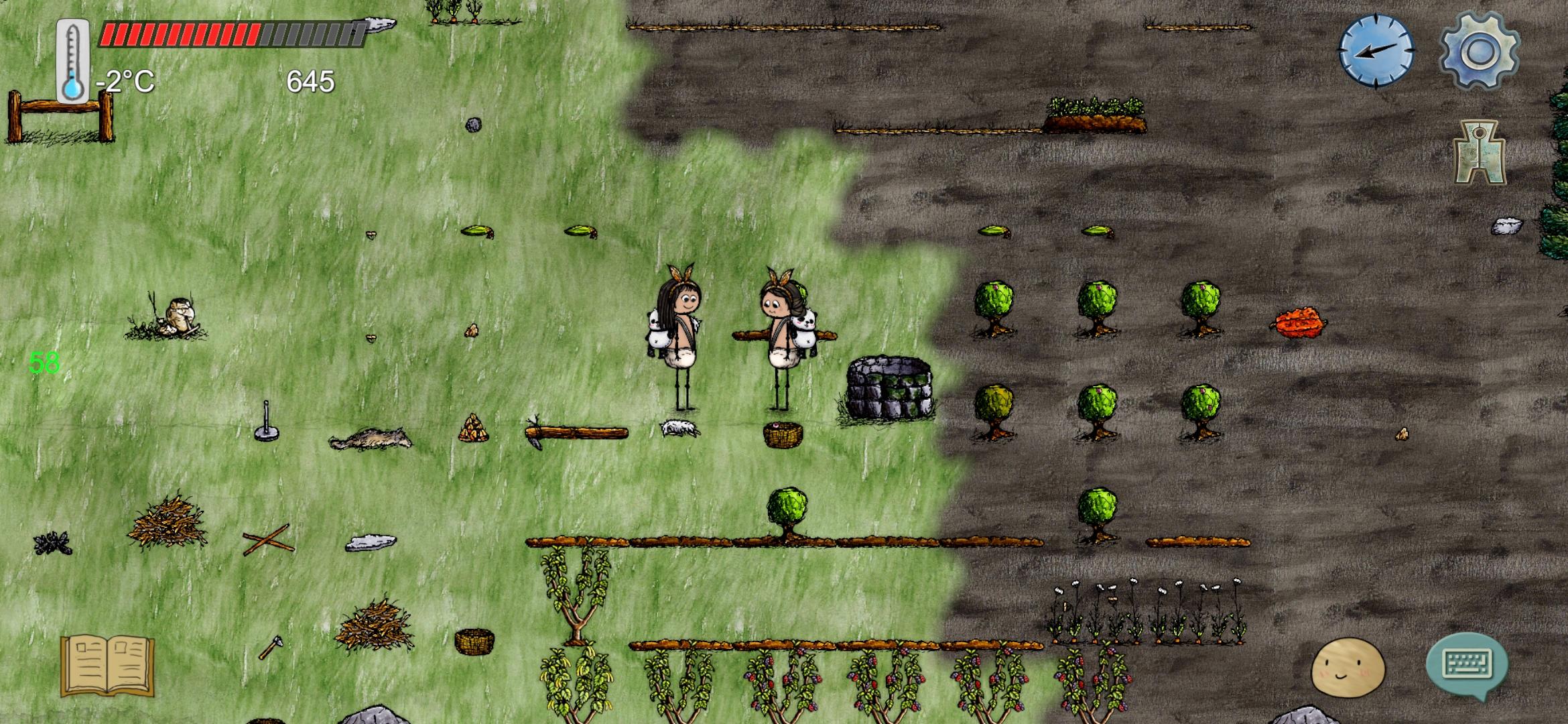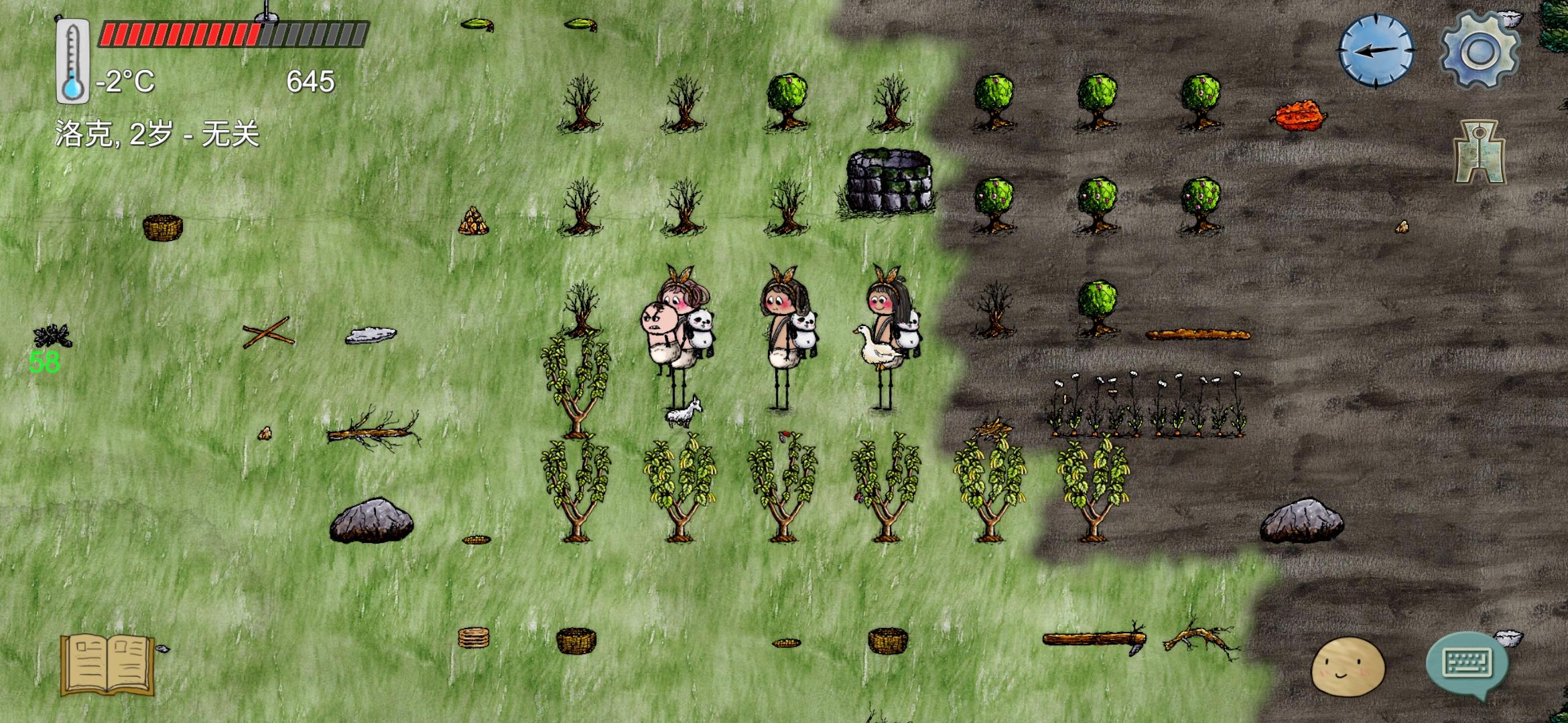过会我看到弥柚柚带着土坯和陶土回来了,突然有点愧疚,我看还缺少生火工具,求我女儿留下来后就去找绳子了,路上生了个女鹅被我骗说有家哈哈哈,找到三根绳子后回家发现另外两个小姐妹不见了,我大女儿还在说她们不玩了,我有点悲伤,但是想想当初快饿死了是这个地方救了我们三姐妹,就跟我大女儿一起烧了碗种了地,算是回馈吧