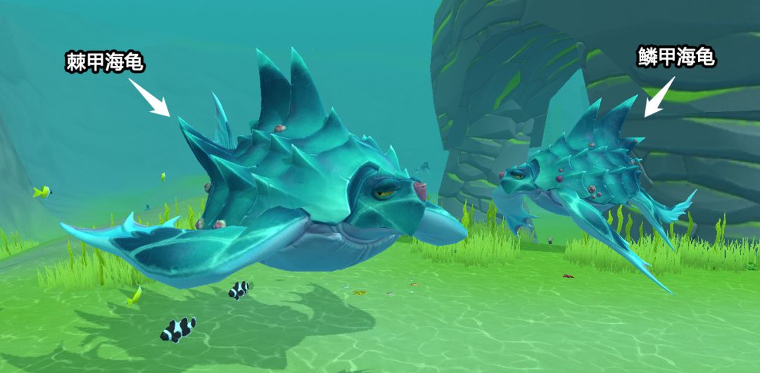 鳞甲海龟 & 棘甲海龟生活在沉眠之海的海龟