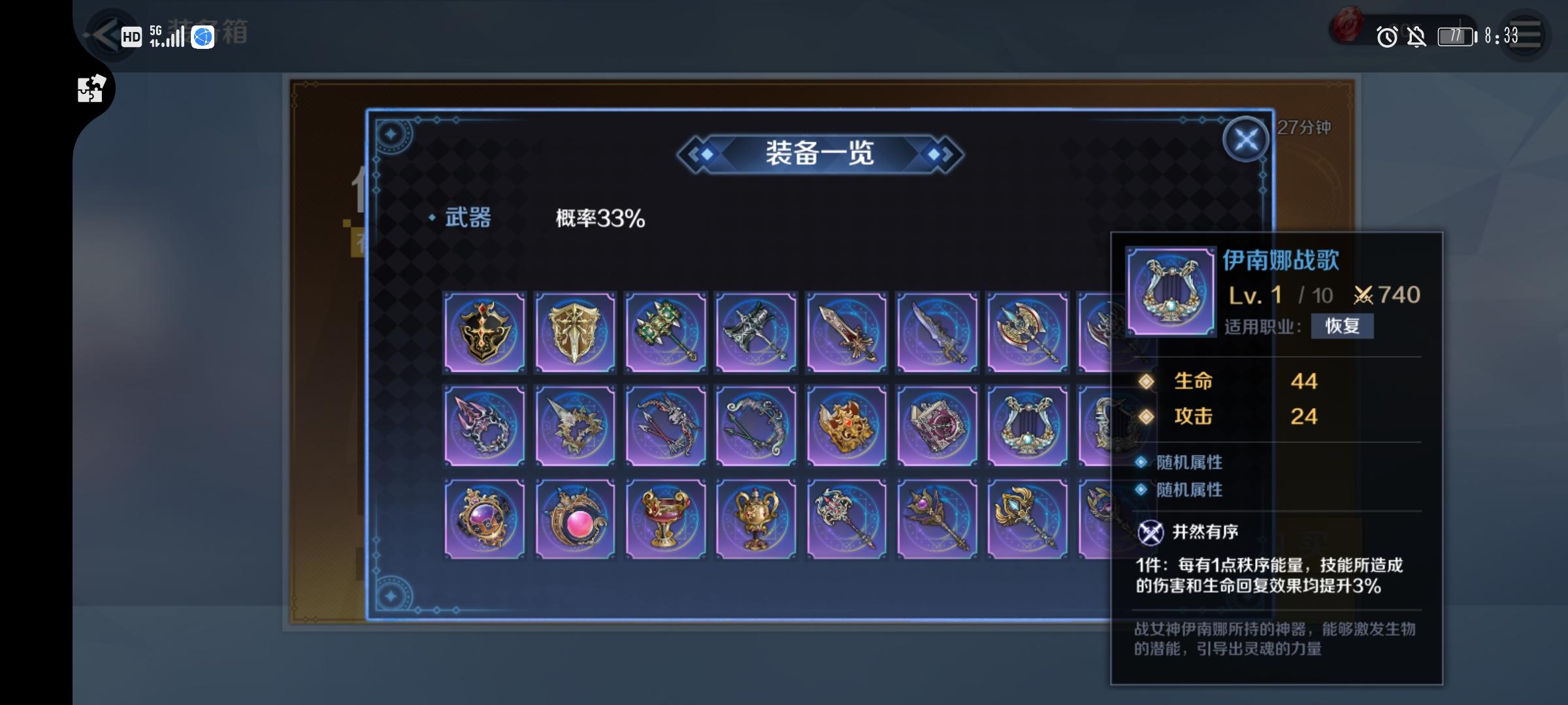下面6张图为刷出的装备技能和箱子里的装备技能,个人觉得武器和衣服,箱子里的技能更好,但是饰品技能两个我觉得都比较多余,但是箱子里的技能比较用的上,但是也不是说刷出来的不能用,箱子开出技能装只有50%的概率。而且1000石一个,一个月只能买10个。很明显比刷出来的技能彩更难获得,所以刷出来的技能装是值得升50的,