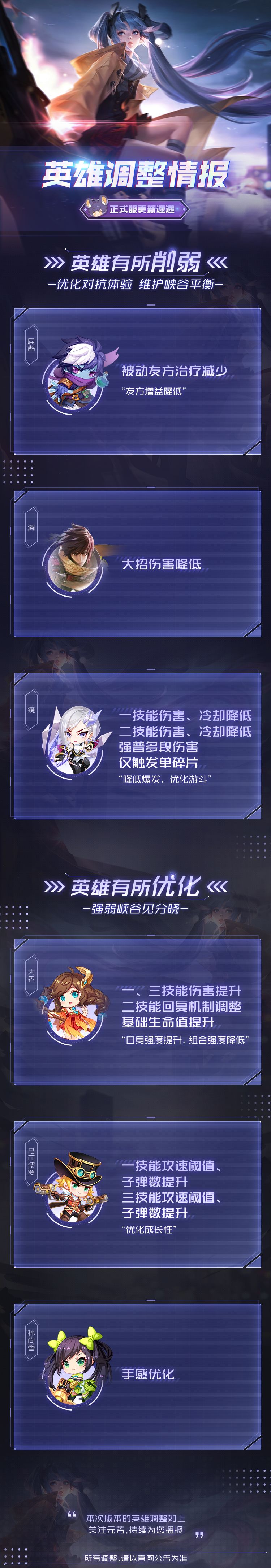 本次版本的英雄调整如上,关注元芳,持续为您播报。