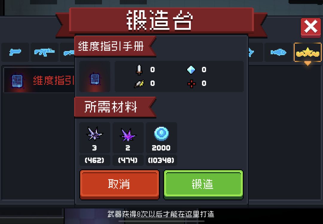 维度指引手册制作材料:3魔法碎片黑曜,三魔法碎片紫,2000蓝币