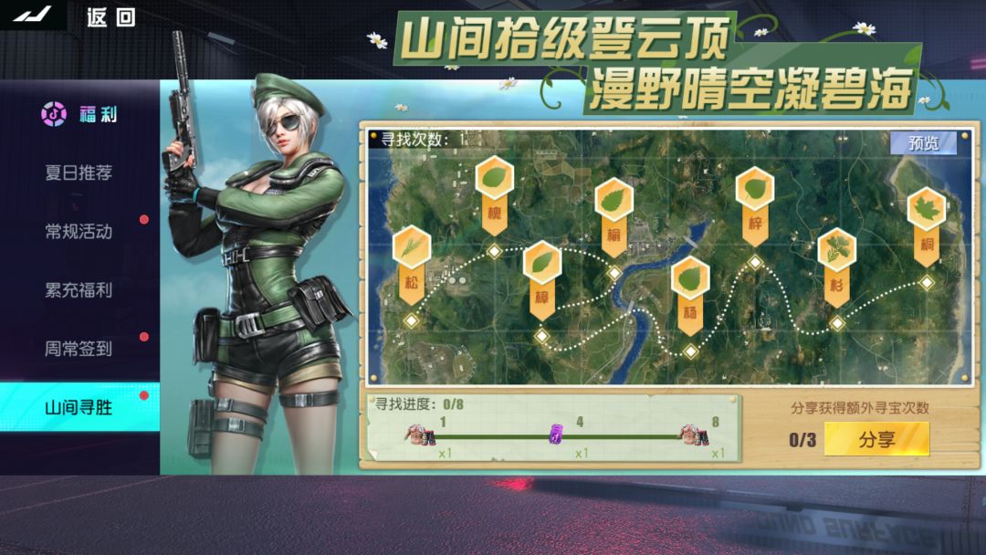 活动期间登陆游戏前往“活动-山间寻胜”界面即可领取当日奖励。每日分享游戏可以额外获得领取次数。