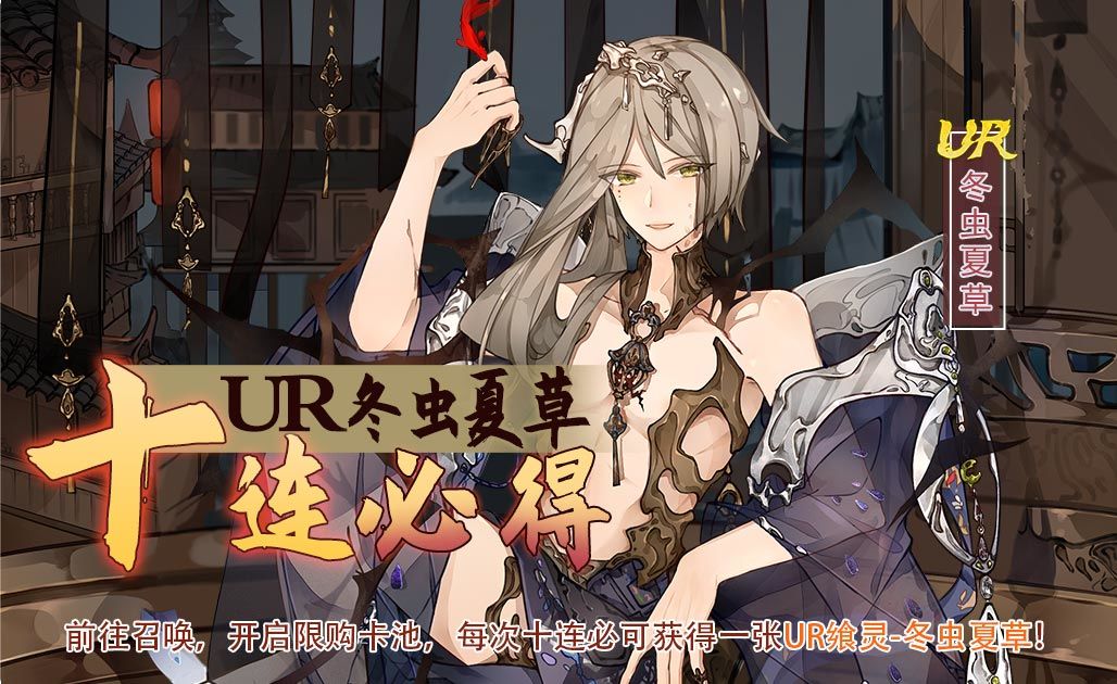 活动描述:活动期间,开启限购卡池,御侍大人可在商城界面使用幻晶石等道具兑换卡池专属道具,该卡池中「UR飨灵-冬虫夏草」重返缇尔菈大陆。