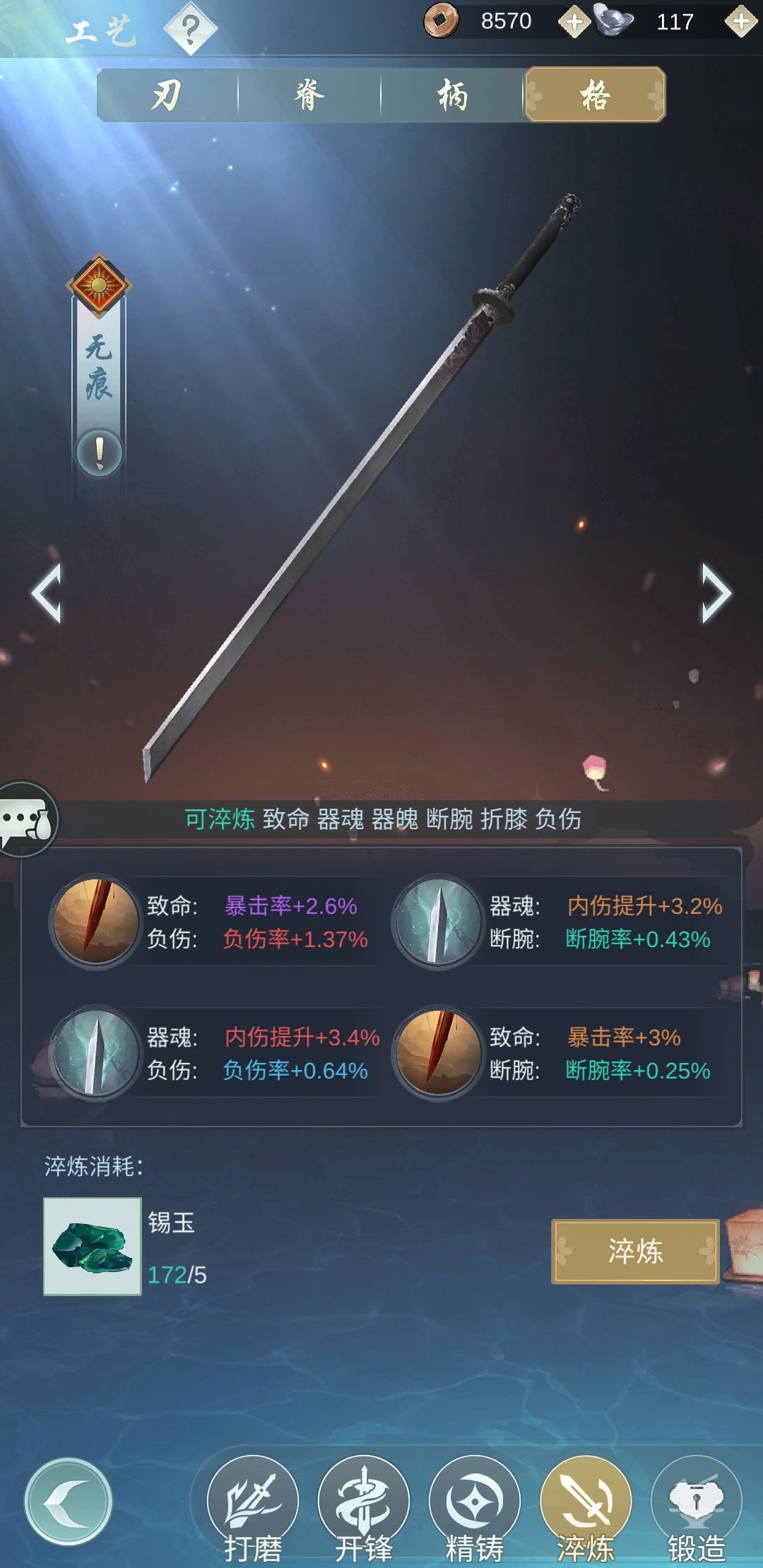 各位大佬,问九该怎么弄?这个锻造功能,我一直玩的懵懵懂懂,我现在都没分清楚,精铸和淬炼的分别