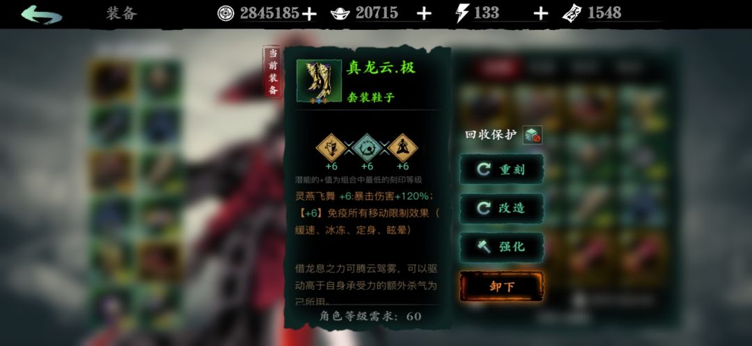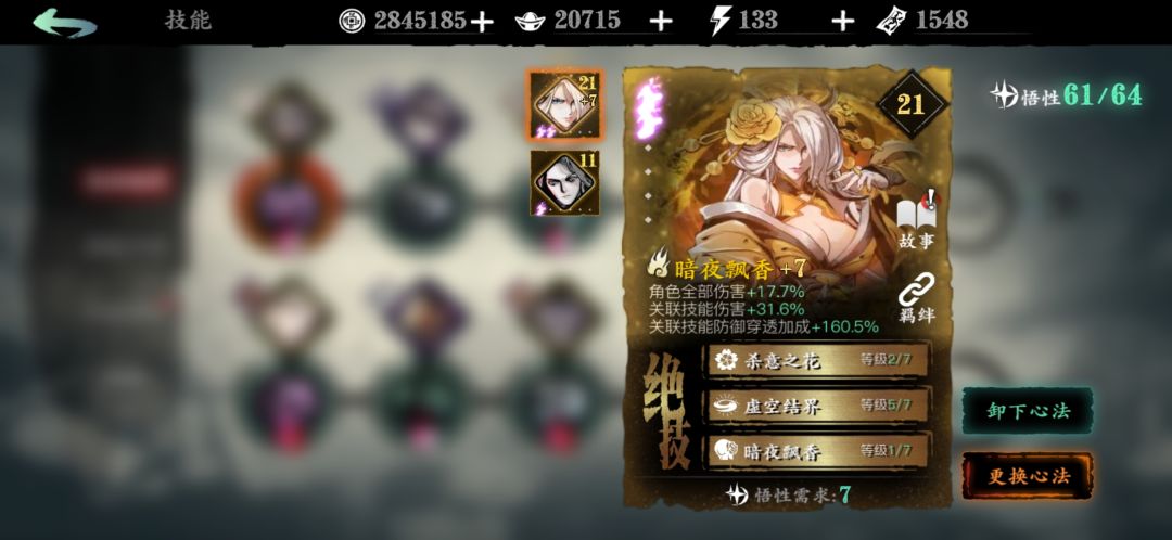 然后为了保证技能伤害要有一定的养成,其中包括双技能链冷却最好控制在6.3之内,还有生成杀意和防止被控制的装备需求,以及心法。