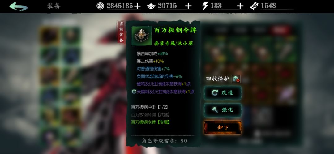 专属要有两个加杀意的属性