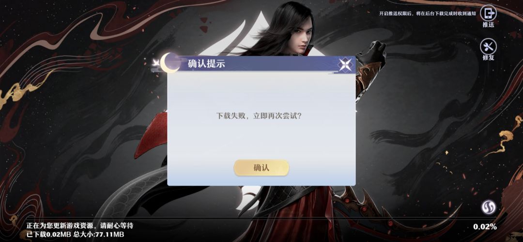 今天晚上的更新包出来后现在11点了还没上去,每次0.01mb的速度在跳,更新到快1mb还直接归零重来,昨晚20几mb的更新包我记得也是更新了1小时多都好,家里是100mb的网,平时下载最高可达10mb每秒,我以为家里网有问题,于是去打开了一下一两个月没玩的天谕