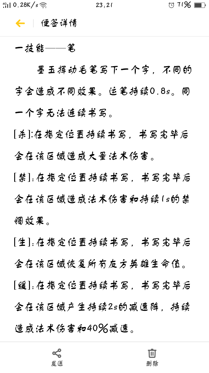 [缓]:在指定位置持续书写,书写完毕后会在该区域产生持续2s的减速阵,持续造成法术伤害和40%减速。
