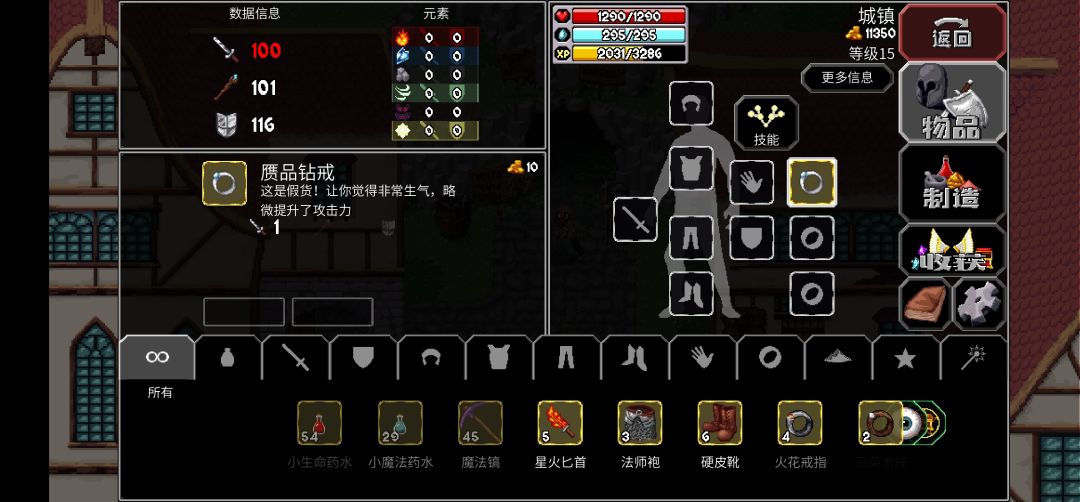 经过一番测试后,确定了部分游戏设定。话不多说,上干货。15级裸装三属性破百,血量上千。(大概三小时)
