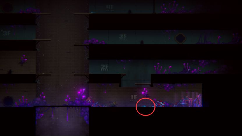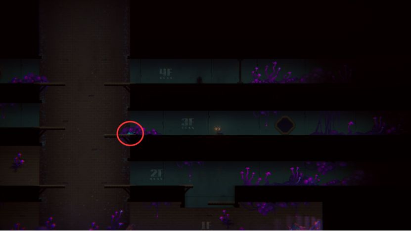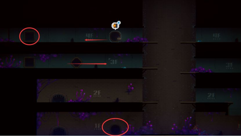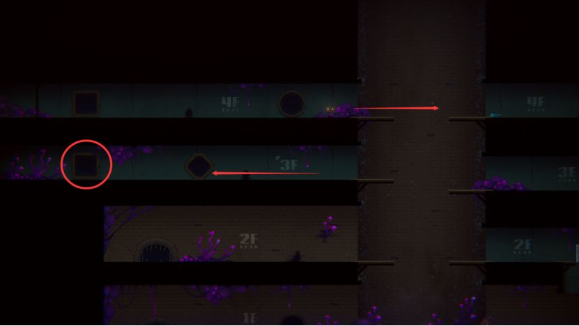 扑杀后我们通过3F左边的方洞回到4F,往右跳过空档,吓跑老鼠。