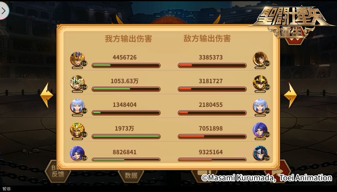 对方阵容:白羊座·贵鬼、传说圣斗士·星矢、冥衣·撒加、北欧圣女·希露达、冥衣·卡妙