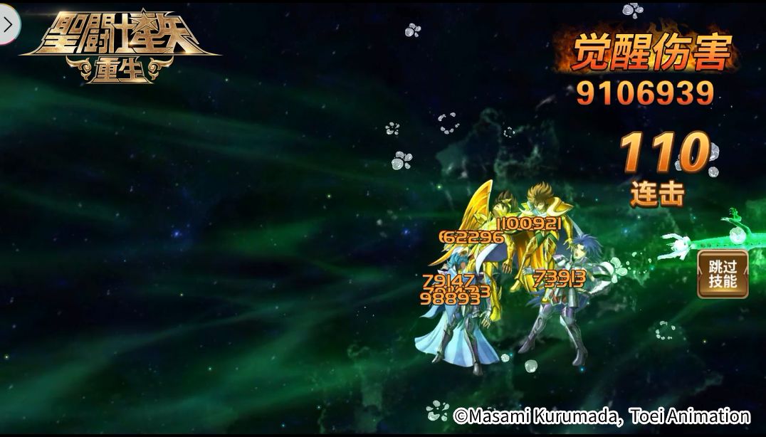 神圣天秤座·童虎施放觉醒技“庐山百龙霸”,因5条青龙魂的加持觉醒技提高了60%的伤害,打出了910W的惊人伤害!