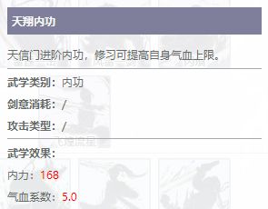 天翔内功修习以后可以提升自身的内力值,会根据其提升内力值的5倍增加自身的气血。