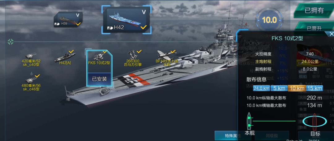 以比较经典的副炮船42为例,在9—11.5km上副炮的输出接近于主炮,9km内对大船输出反而在下降,对小型目标输出在上升,这就形成了近战时不同的优势距离。
