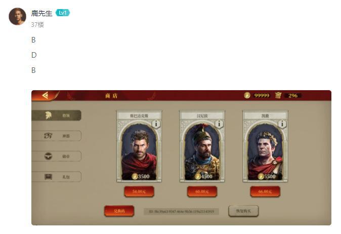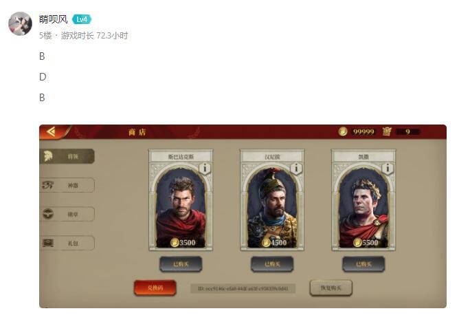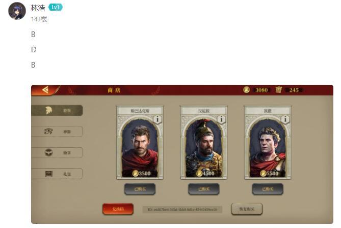 《帝国军团罗马》有奖答题活动中奖名单