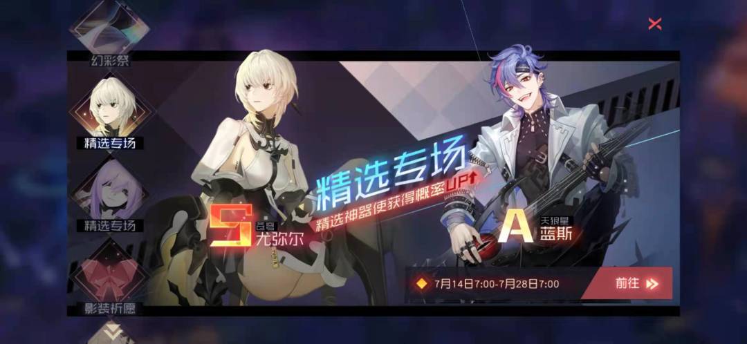 7月14日维护后至7月28日早7:00:尤弥尔(S级)、蓝斯(A级)概率UP