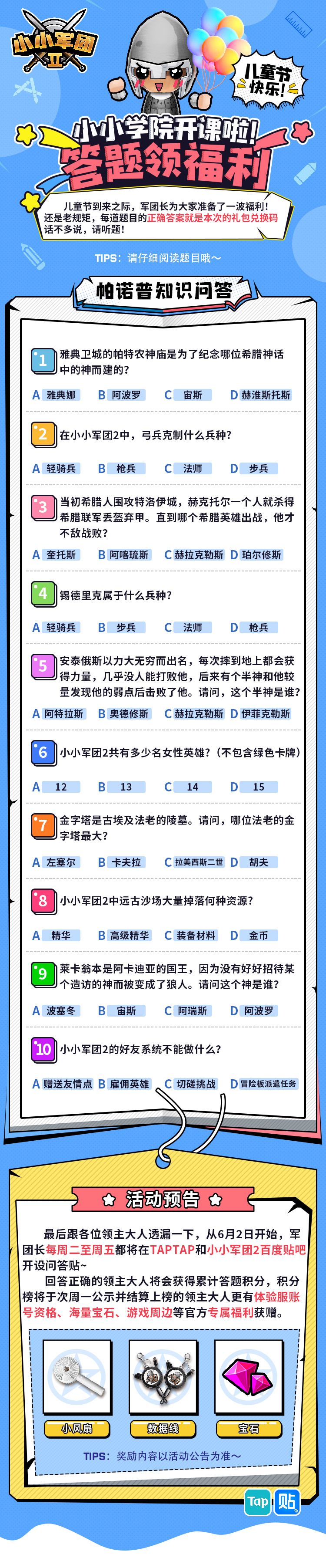 【重磅预告!】另外,从6月2日开始,军团长每天都将在Taptap和小小军团2百度贴吧开设问答贴~