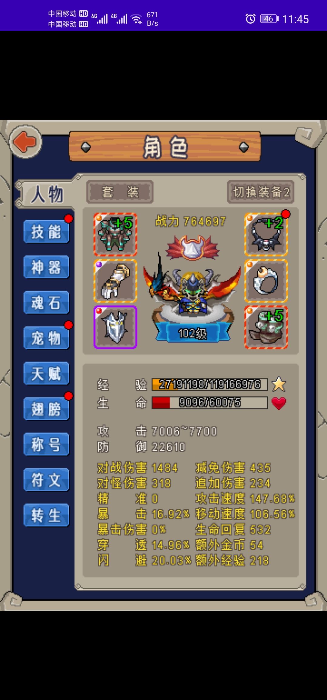 4.换装备时候不要换衣服鞋子可以撑防御,宝石带生命防御闪避穿透(攻击力低攻速快可以多回几口血)