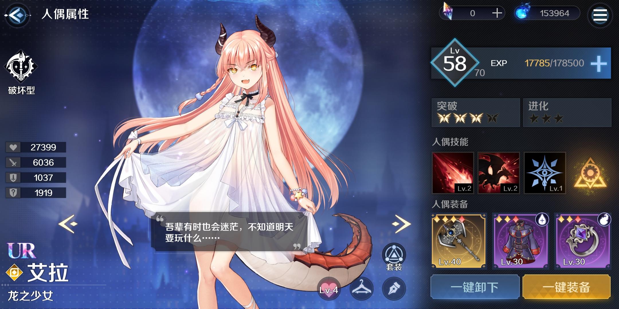 龙女带两奶,直接通关4-20,装备记得带魔抗,别看我金装,奶妈的都没有升满,紫色的升满就够用了,实在不行在拉一点等级,龙女最好点出被动,减少奶妈压力,如果打不过,助战选个减伤加血的,技能变龙以后,选喷火+诺伦的2技能有减伤 ,今天入坑第三天,通关记录,龙女昨天才抽到,剑圣没有破甲真的太刮痧了。