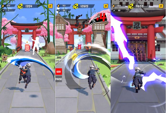 二、 现在,他们的士兵在城中到处破坏。忍者君,请用你高超的战斗刀法、百发百中的手里剑和你们神秘的忍术,将他们一一揍飞,为我的子民复仇!(玩家能够击杀敌方士兵和在特定区域使用忍术)