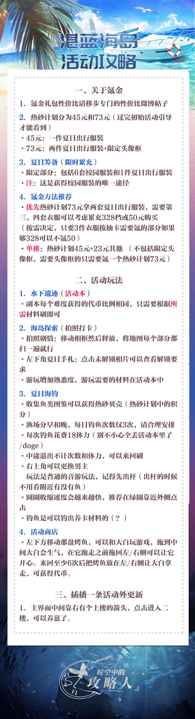 “尊敬的旅客大家好,欢迎乘坐时空中的攻略人号。本班次的目的地为佩特曼海岛。在登岛之前,请允许我为各位介绍岛上的设施及游玩攻略,祝各位旅途愉快。”