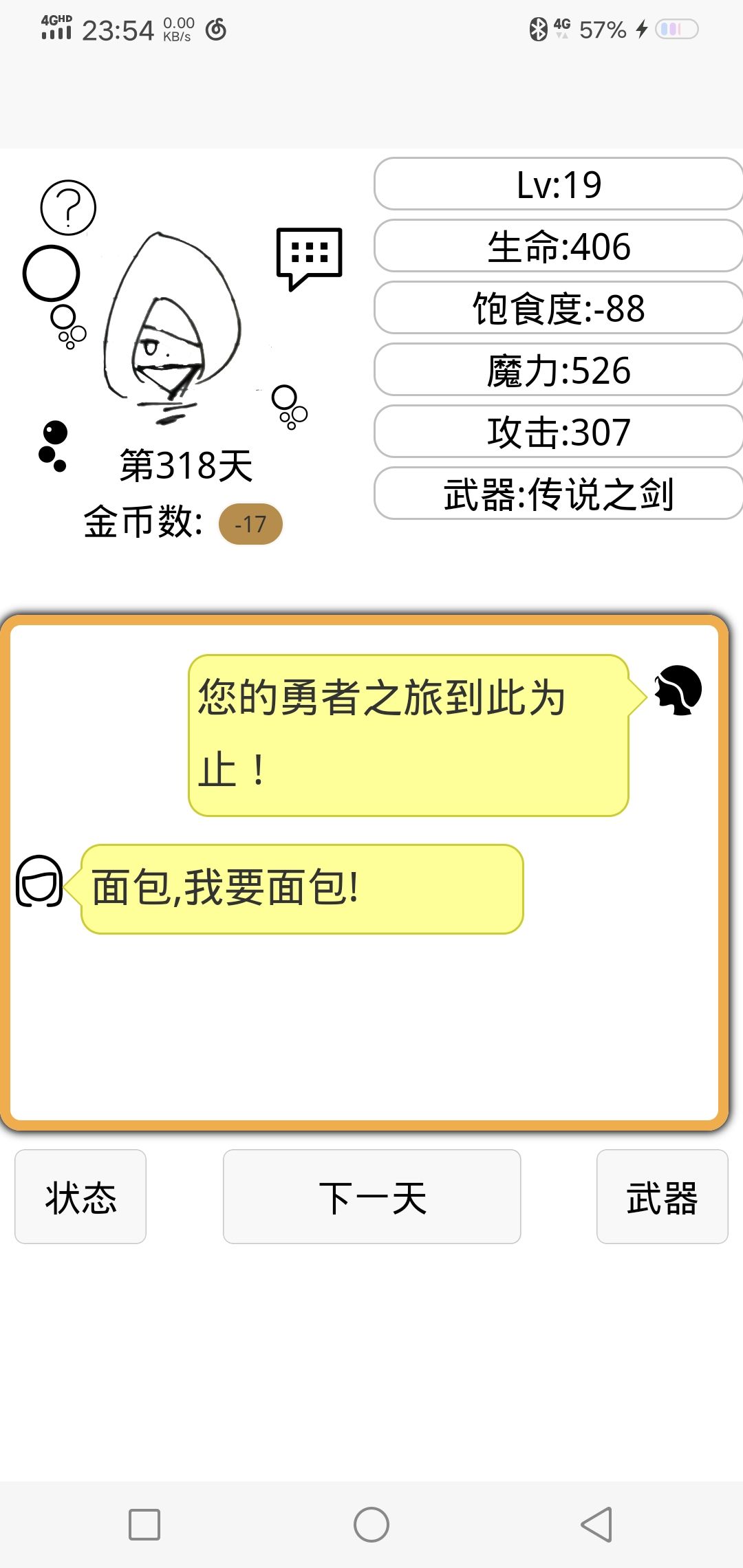 卡bug了,一直不死,不过重新打开,显示饿死了哈哈